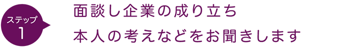 まずは、御社が現在どのような課題を抱えているのか、じっくりお話を伺います。その背景として企業のスタートから現在までの経緯、理念や今後の方向性、社長様の想いなどをお聞きし、情報を共有しながら問題点を整理いたします。